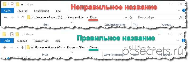 Путь к папке и ее название, как правило, указывается при установке игры. Довольно часто этот путь уже прописан в окне установщика и никто его не меняет. Если запускаемая вами игра размещена в папке с русским названием, то простое переименование папки может обернуться другими проблемами, ведь при установке программ на компьютер информация о их компонентах заносится в реестр Windows. В данном случае наиболее правильным решением проблемы APPCRASH будет удаление игры и повторная ее установка в папку, не содержащую русских букв.