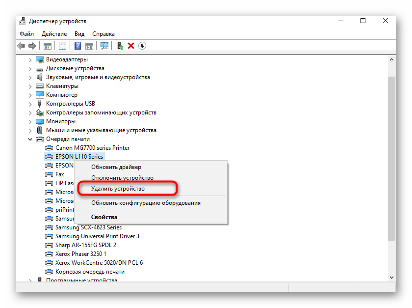 - Щелкните правой кнопкой мыши драйвер вашего сканера и выберите Удалить