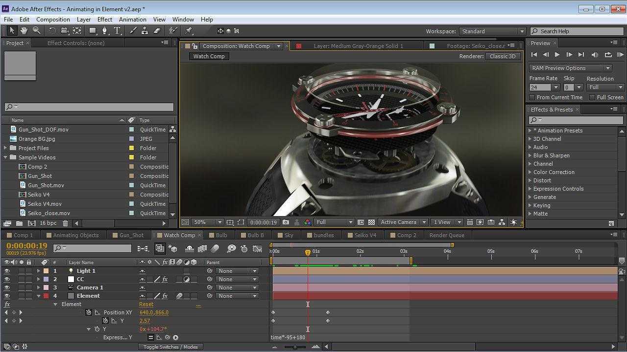 Второй по популярности плагин — Element 3D. Для Adobe After Effects он также является незаменимым. Основная функция приложения понятна из названия — это работа с трехмерными объектами. Позволяет создавать любые 3D и анимировать их. Имеет в своем составе практически все функции, которые нужны для полноценной работы с такими объектами.