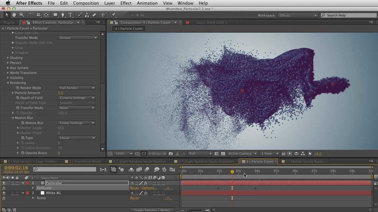 Trapcode Particular — по праву можно назвать одним из лидеров в своей области. Работает он с очень мелкими частицами и позволяет состовлять из них эффекты песка, дождя, дыма и многое другое. В руках специалиста способен создавать красивейшие видео или динамические изображения.