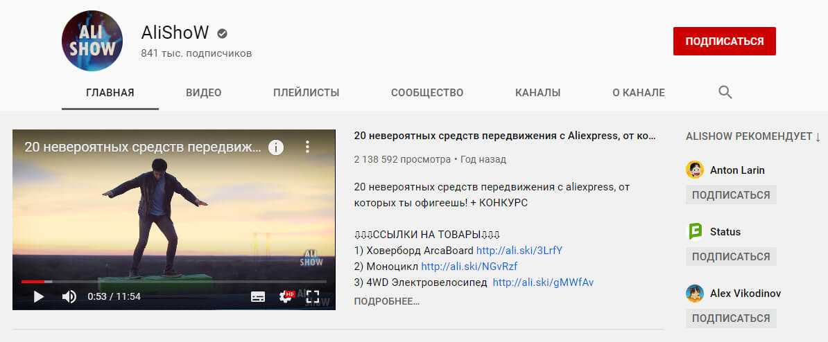 AliShoW — канал полностью посвящен товарам с Алиэкспресс, под видео партнерские ссылки на страницы товаров