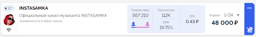 Каналы с аудиторией от 100 тысяч подписчиков берутся за рекламу стоимостью от 14-15 тысяч рублей. При этом в Инстаграме у блогера с 150 000 подписчиков нельзя найти прайс на рекламу со средним значением меньше 20 тысяч рублей.