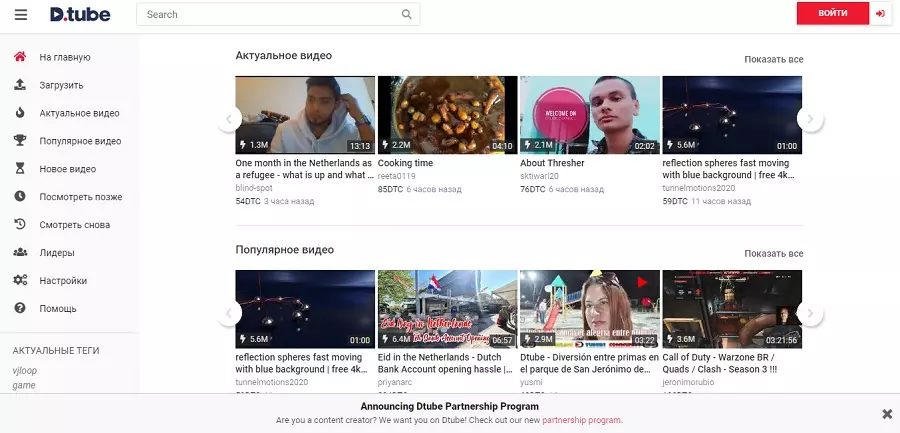 DTube – еще одна альтернатива ютубу для тех, кто хочет контролировать свои видеоролики. Здесь можно загружать любой контент без боязни, что его могут удалить, а вас – заблокировать. Видеофайлы хранятся на децентрализованном блокчейне, что обеспечивает конфиденциальность ваших данных и сохранность загрузок. Хотя стандартной монетизации контента здесь нет, есть опционал вознаграждений в криптовалюте DTC.