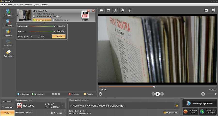 Сохранять готовое видео также просто. Хотите на компьютер? Выбираете видеофайл, где уже будут применены все необходимые настройки. Хотите выложить на YouTube? Нажимаете соответствующую кнопку и загружаете сразу на сайт
