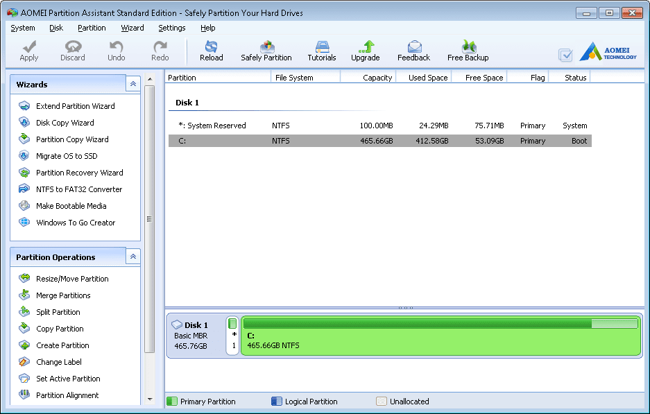 AOMEI Partition Assistant, стандартная версия