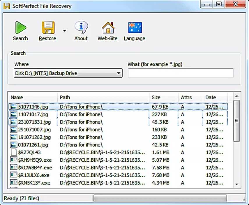 SoftPerfect File Recovery — еще одна превосходная программа для удаления файлов. Поиск восстанавливаемых файлов очень прост. Любой человек сможет использовать эту программу без особых проблем.