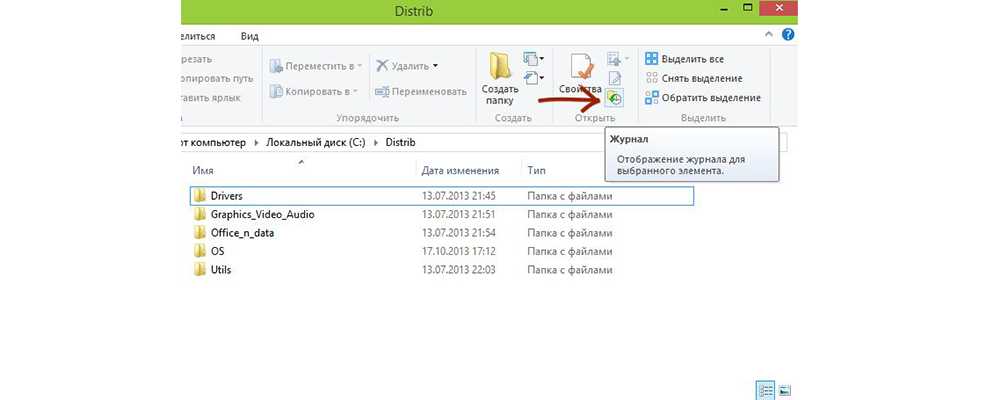 В Windows 8 есть отличная опция – «История файлов». Однако она не работает по умолчанию: ее нужно настраивать вручную. Для возврата информации достаточно зайти в фолдер, где ранее располагался файл, и нажать на кнопку «Журнал» (находится на верхней панели инструментов рядом со значком «Свойства»).