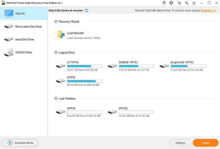 Как видно из названия, программа доступна бесплатно, если предполагается некоммерческое ее использование. Ее можно скачать и установить на съемный диск для запуска оттуда, что позволит оградить жесткий диск от лишней записи на него. Это даст больше шансов на восстановление информации.