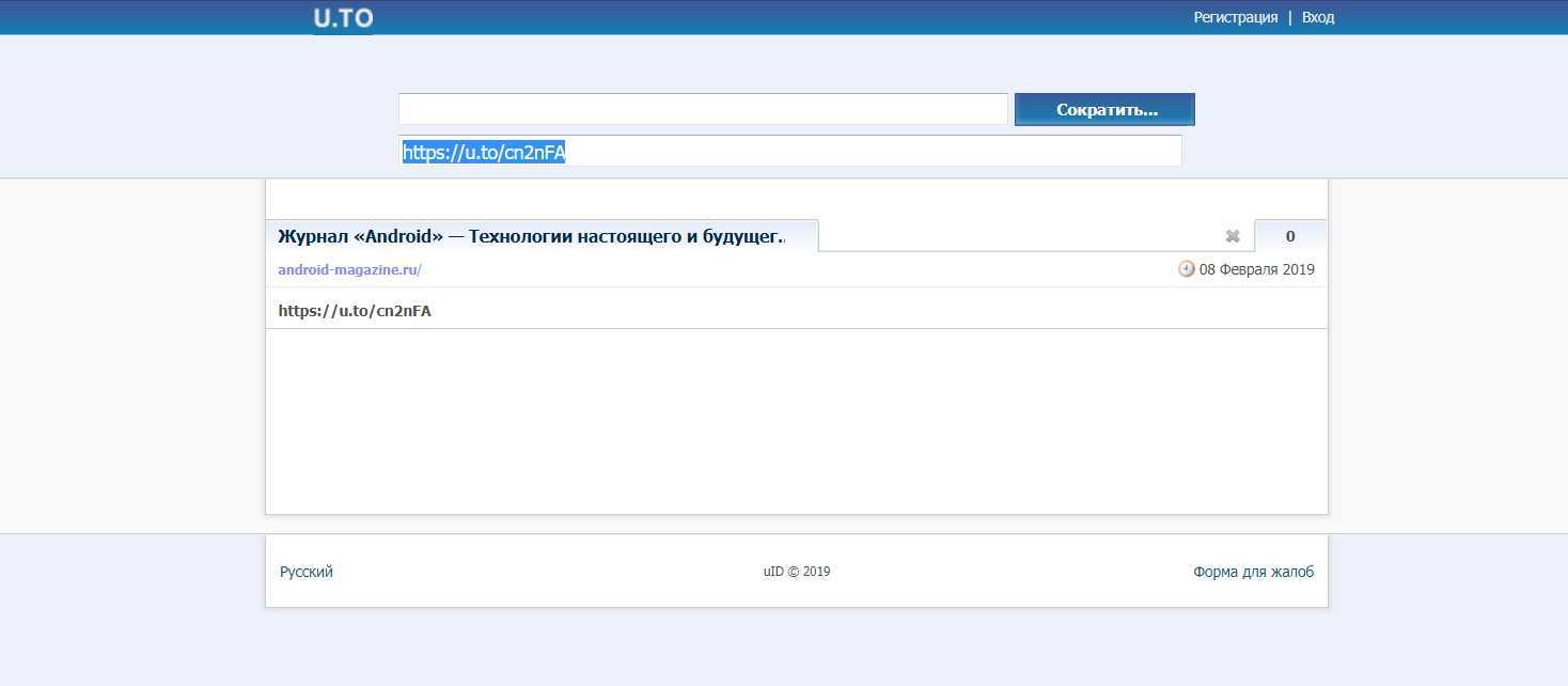 - Сервис автоматически создаст укороченную ссылку.