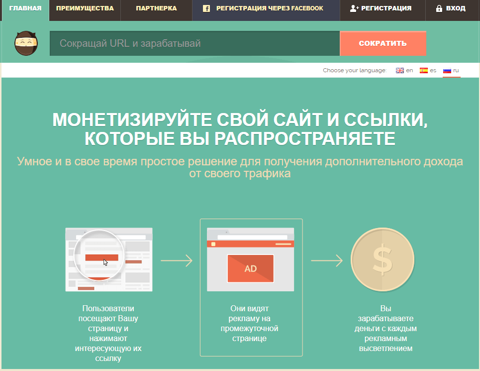 Помимо основной функции — укорачивания урл, на некоторых сервисах можно зарабатывать. Таким образом они деляться с вами за просмотр рекламы или иные способы монетизации своего сервиса.