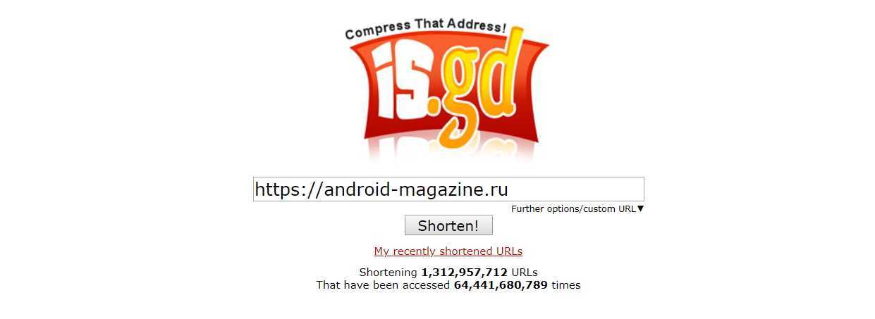 Is.gd – один из простейших генераторов сокращенных ссылок. В нем нет ничего лишнего или отвлекающего (например, капчи) – только поле, в которое вы добавляете ссылку; на выходе получаете краткий аналог ссылки, которую к тому же можно кастомизировать на свой вкус и подключить к ней статистику просмотров.