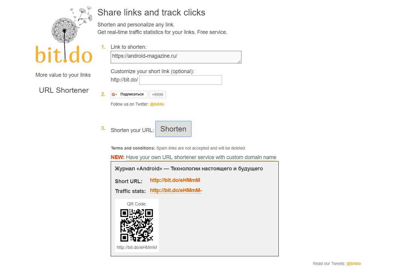Особенности: некоторые провайдеры в России блокируют ссылки, сокращенные через Bitly. Поэтому его сложно рекомендовать для Рунета. Для западных проектов можно использовать без ограничений.