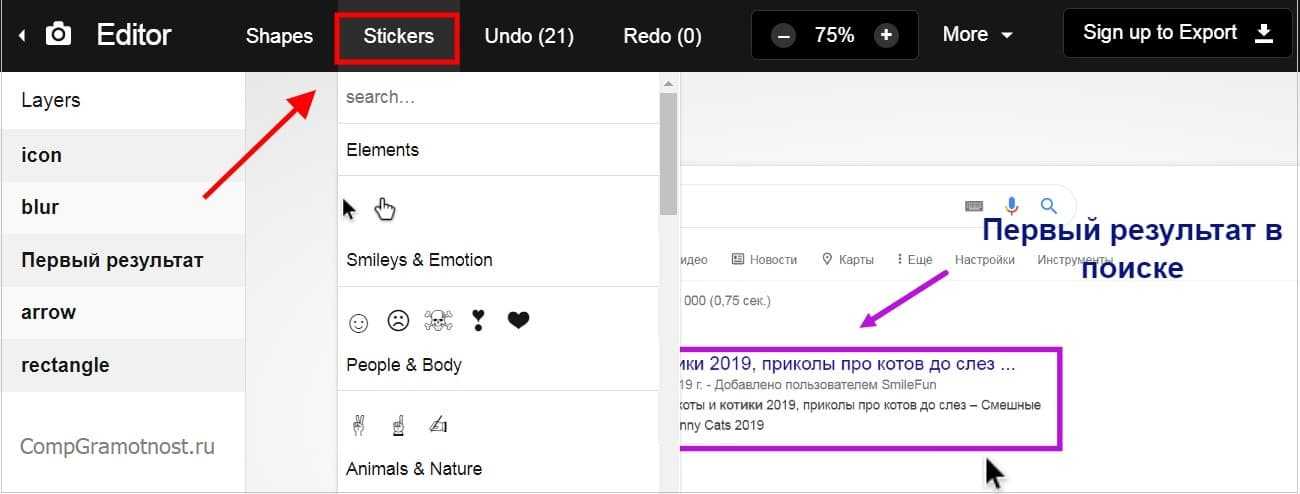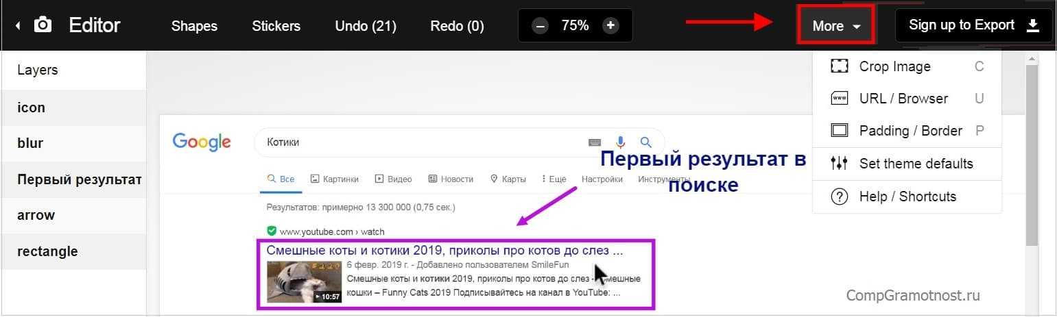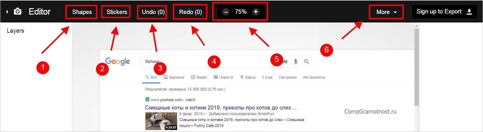 Сервис отличается наличием онлайн редактора, в который легко можно импортировать скриншот прямо из окна программы. Интернет-приложение выполнено настолько качественно, что оно напоминает популярный Adobe Photoshop.