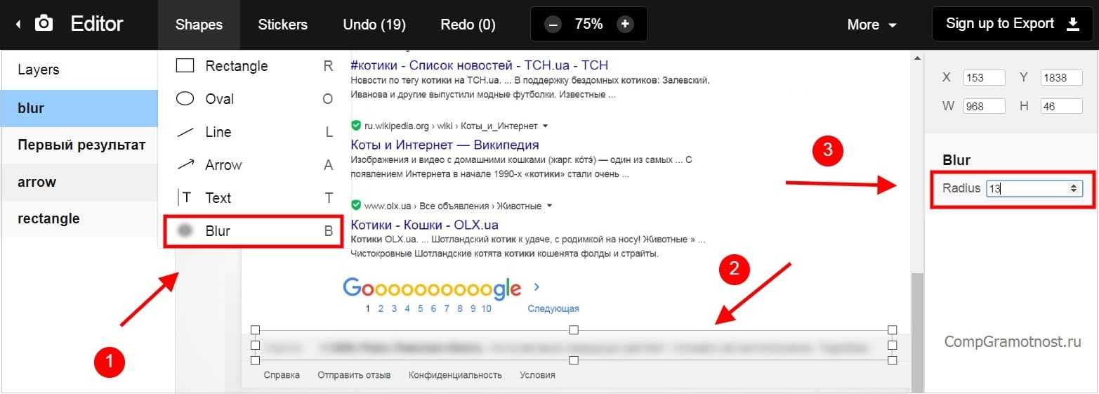 Рис. 9 (Клик для увеличения). «Blur» – размытие, сокрытие личных данных, которые нельзя афишировать на весь интернет.