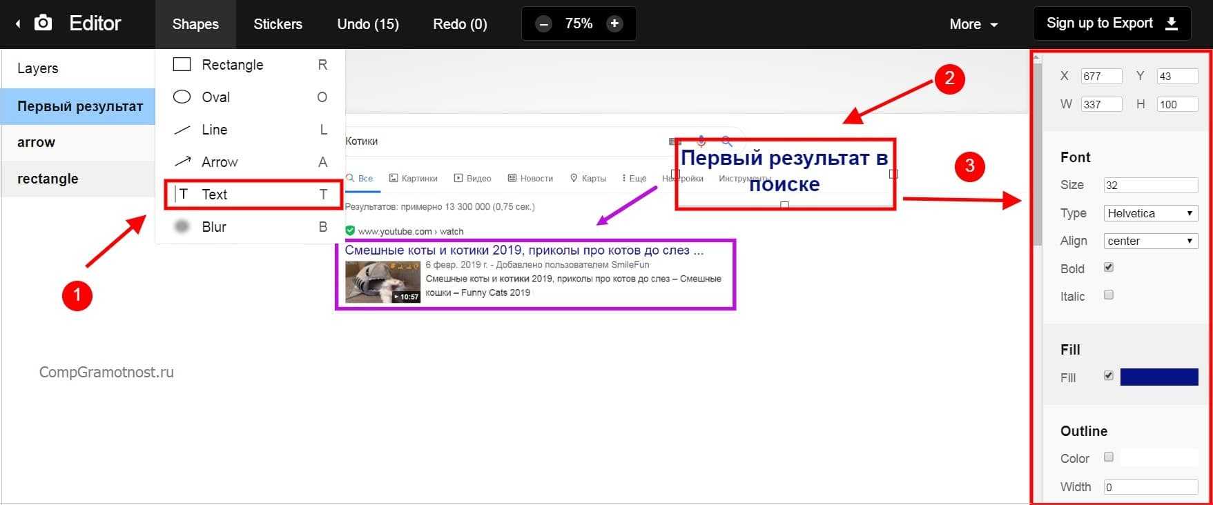 Инструмент «Текст» (Text) позволяет написать на скриншоте текст в любом месте (рис. 8):