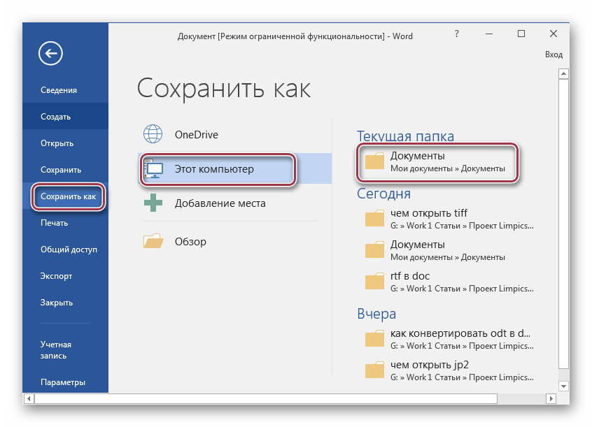 Далее все как обычно, выбираем путь (место) хранения документа и нажимаем “Сохранить”. Файл сохранится в требуемом формате.