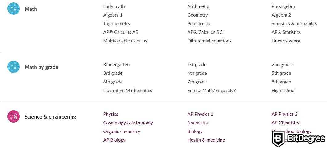 Как только вы решите выбрать курс, вы можете либо сделать это, введя нужное ключевое слово в строку поиска, либо выбрав тему из выпадающего меню в верхней части главной страницы. Одна вещь, которую я сразу заметил, заключается в том, что, хотя Академия Хана предлагает широкий выбор тем на выбор, основной акцент делается на математике и предметах, непосредственно связанных с ней. Просто есть кое-что, что нужно иметь в виду!