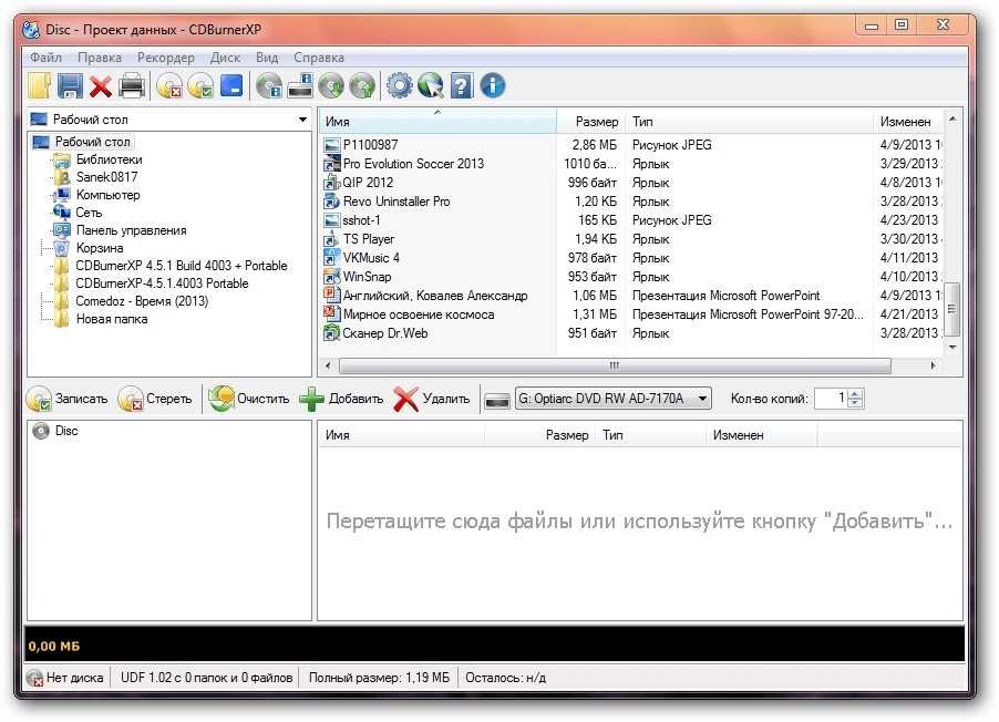 №10. Проводник для записи данных на диск в CDBurnerXP