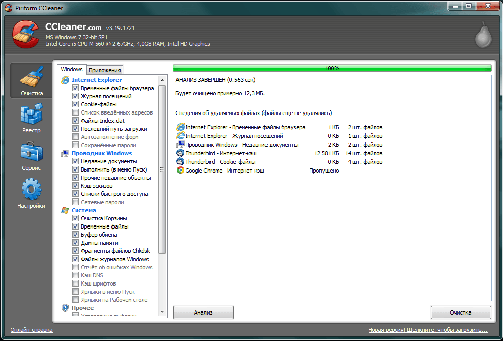 Очистка диска при помощи бесплатной утилиты CCleaner