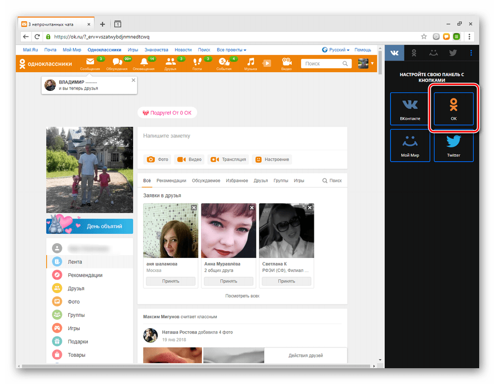 Теперь новости вашей страницы в ОК будут отображаться в правой части браузера.
