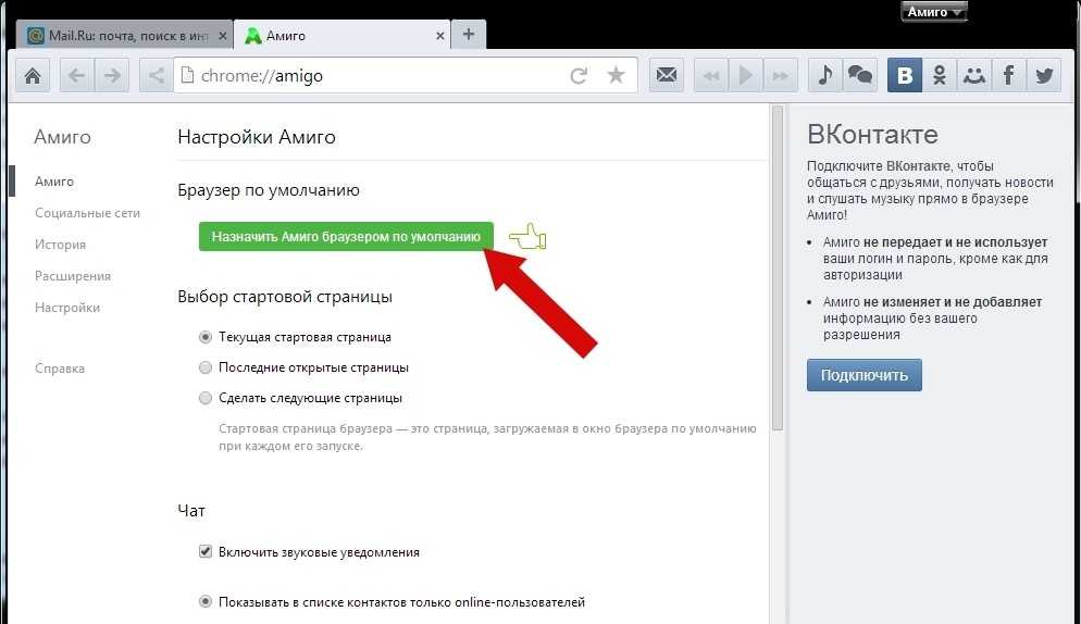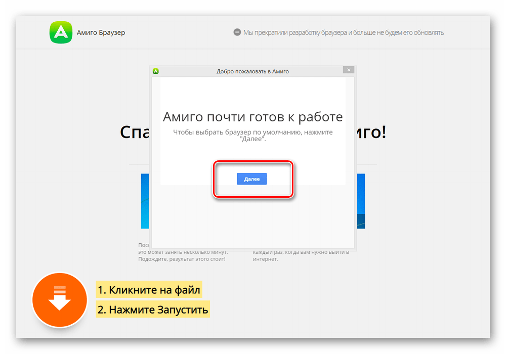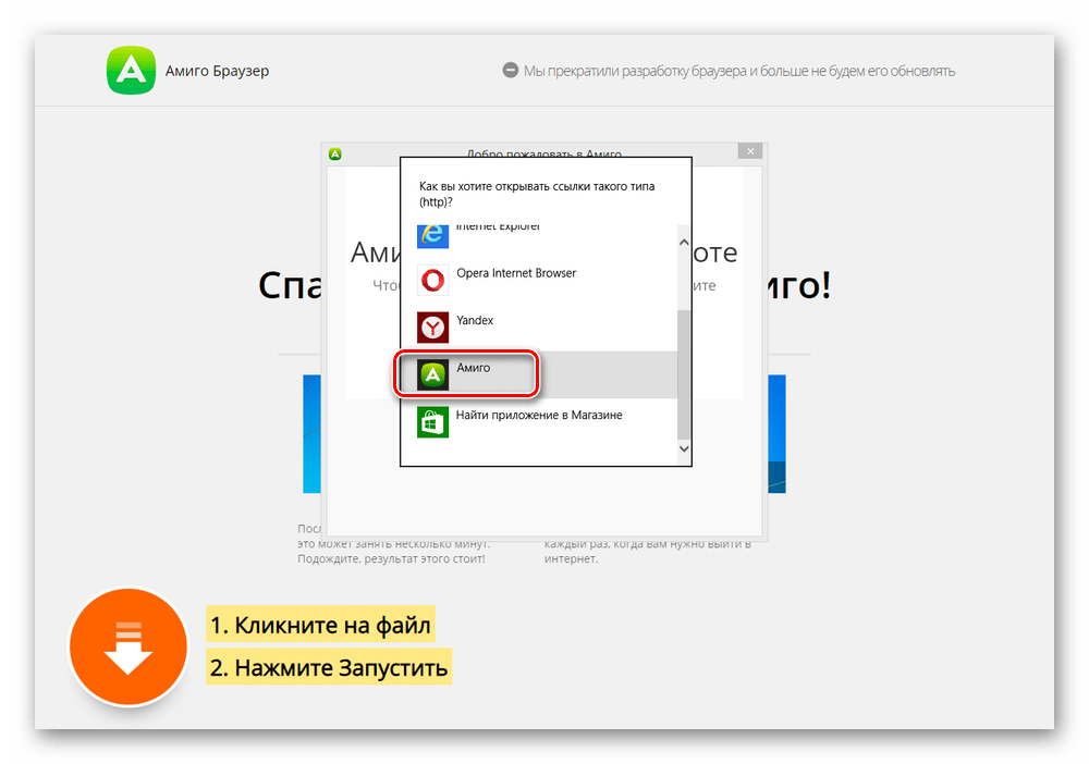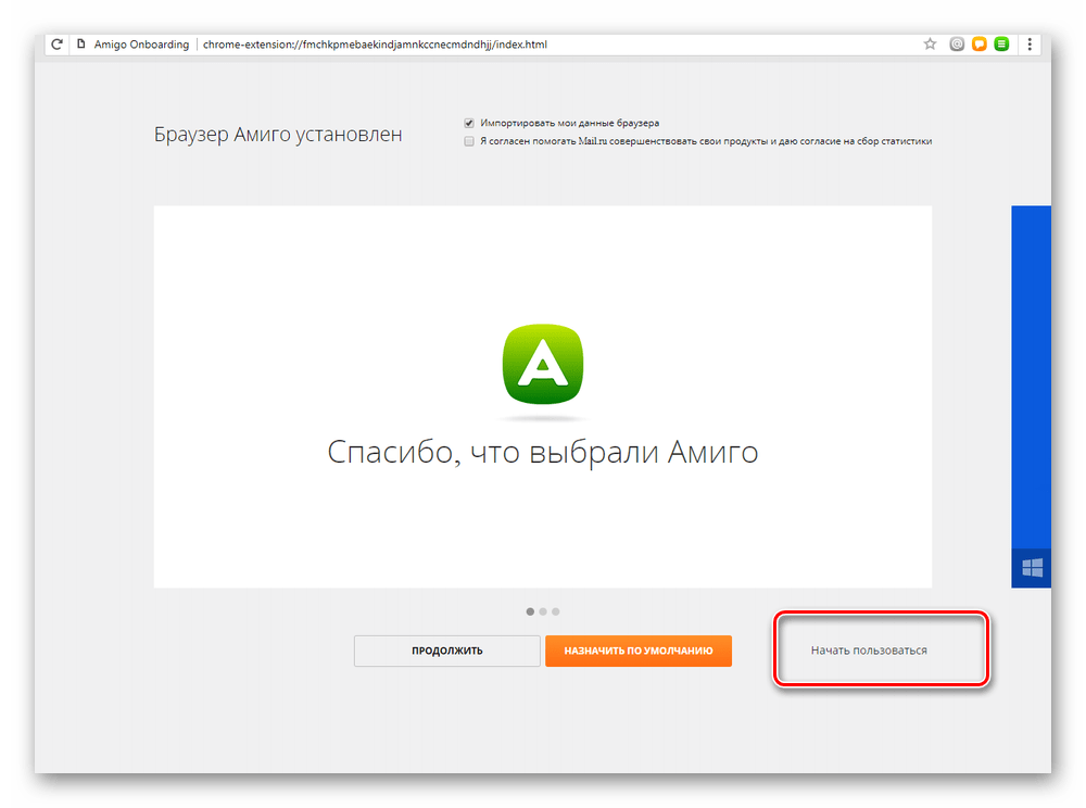 При желании можно сразу же сделать Амиго браузером по умолчанию.