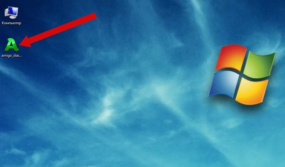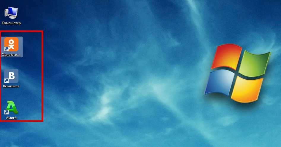 По окончании процесса установки на рабочем столе появиться значок браузера Амиго, а также значки соц. сетей.