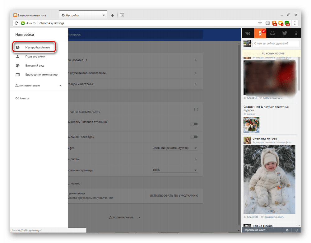 Существует такой интернет-обозреватель Амиго, созданный специально для пользователей социальных сетей. Раньше он даже назывался Одноклассники. Попробуем вместе установить его на ноутбук и настроить отображение клиента социальной сети.