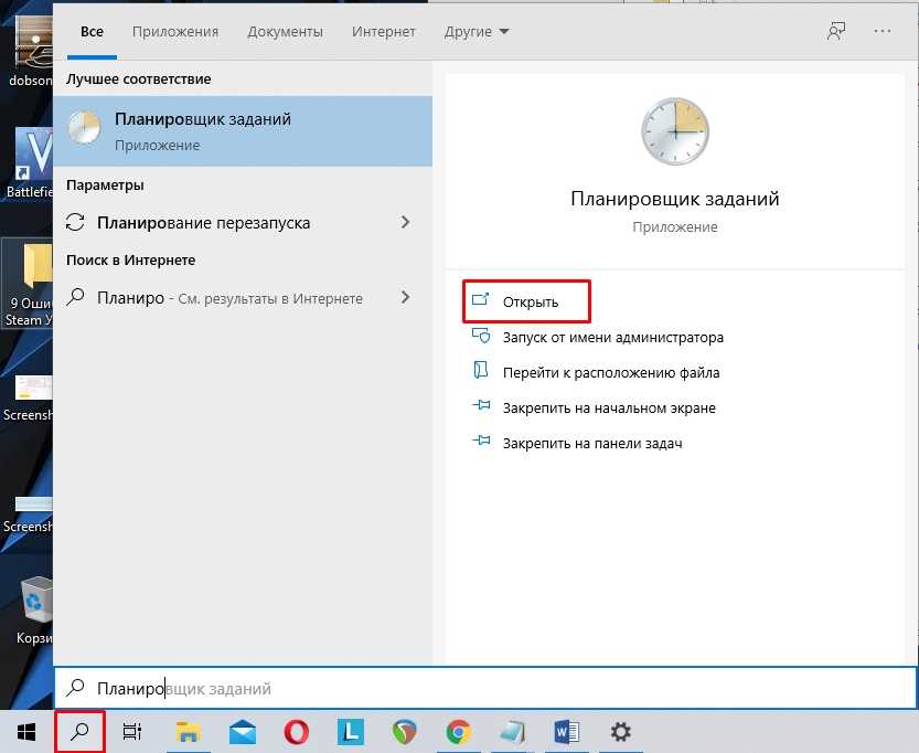 - Проще всего запустить планировщик заданий через поисковую строку Windows
