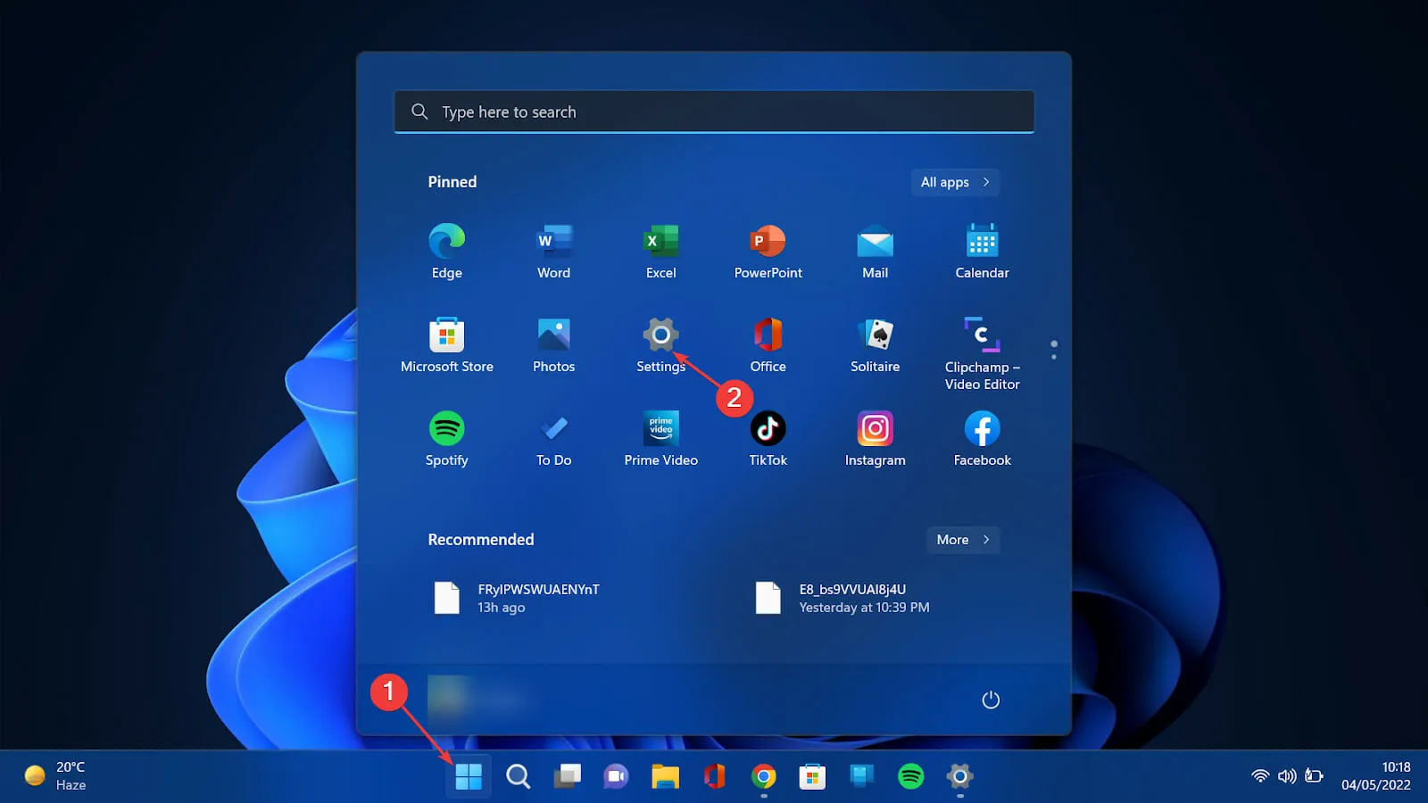 Перейдите в «Пуск» и выберите параметр «Настройки».