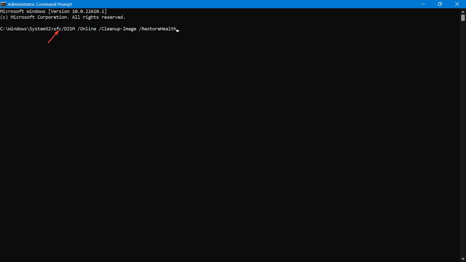 После перезагрузки повторите шаг 1 и введите следующую команду, чтобы восстановить все поврежденные файлы в реестре:DISM /Online /Cleanup-Image /RestoreHealth