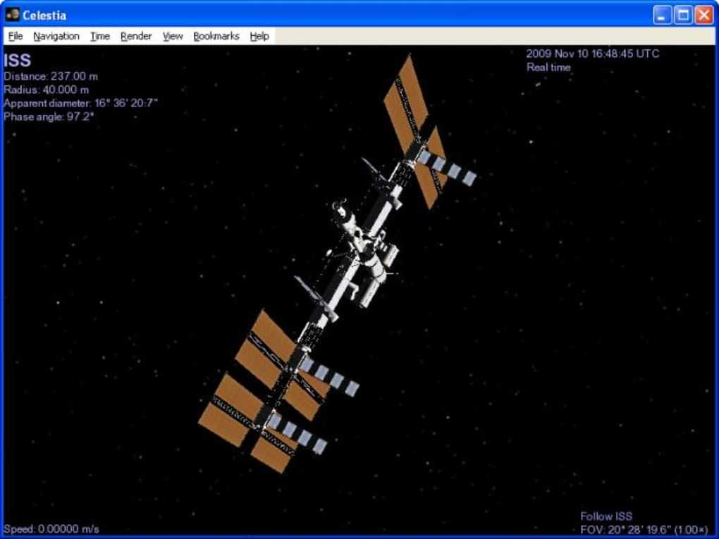 Celestia основана на каталоге Hipparcos, насчитывающем более 100 000 звезд как в нашей галактике, так и за ее пределами. С помощью кнопок управления пользователи могут «перемещаться» по звездному небу буквально со скоростью света. Это ПО предоставляет исчерпывающие сведения о планетах и других небесных объектах всем любителям астрономии и людям, профессионально занимающимся наукой о звездах. Кроме того, Celestia имеет обширную коллекцию надстроек на сайте Motherlode, с помощью которой вы можете добавлять в программное обеспечение новые карты текстур поверхности, астероиды, кометы, космические аппараты и спутники.