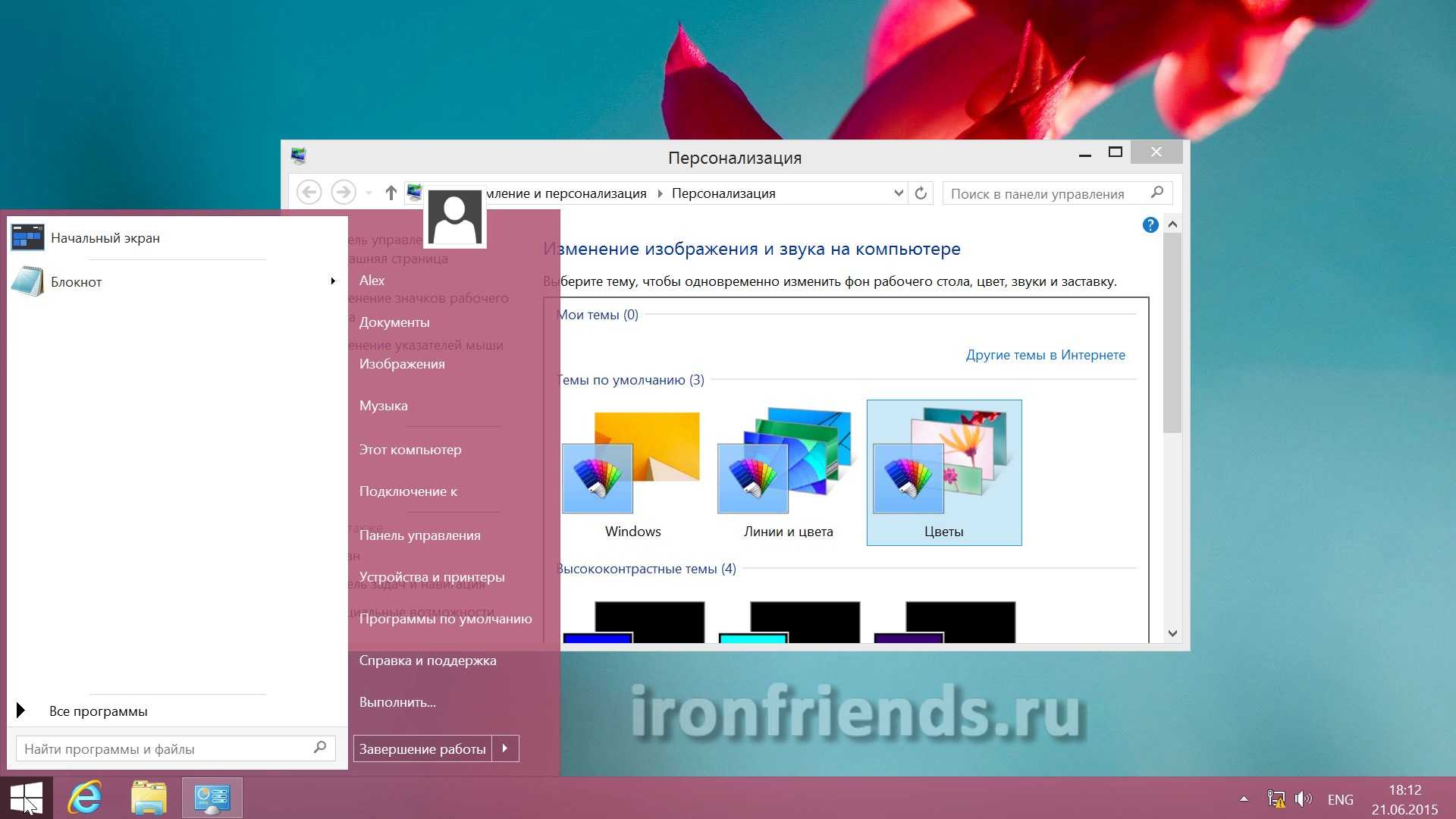Меню ПУСК хорошо подстраивается под цветовые темы Windows 8.1, но в целом немного уступает в оформлении программе «Start8».