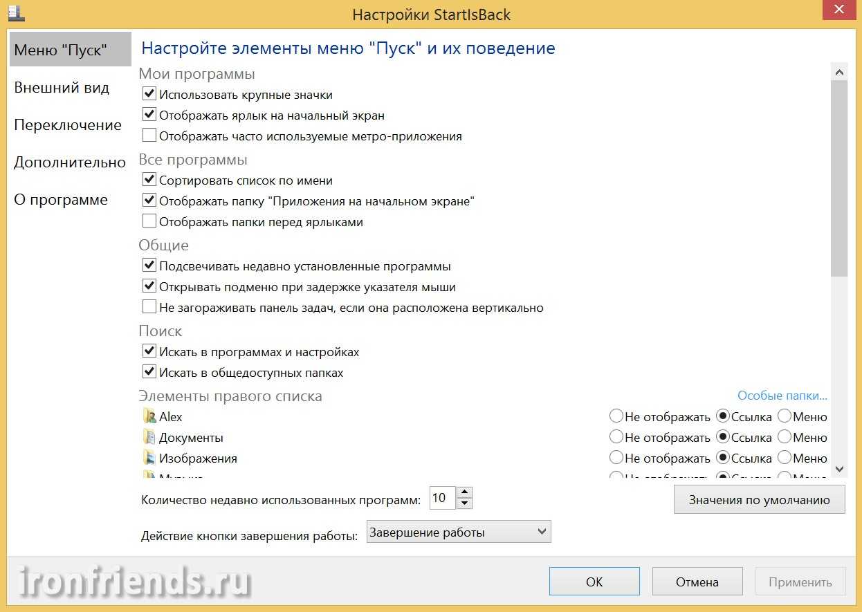 Среди самых популярных программ можно выделить Stardock Star 10, Classic Shell, iObit Start Menu и т. д.