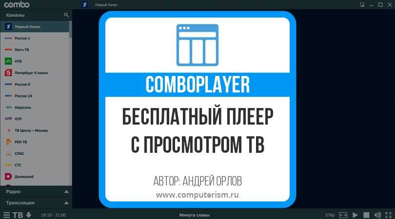 С помощью утилиты Combo Player можно смотреть телевизионные каналы через компьютер или ноутбук. Среди популярных каналов: «Первый», «Матч ТВ», «СТС», «НТВ», вы можете найти и ряд других. В базе около 20 бесплатных телевизионных каналов.