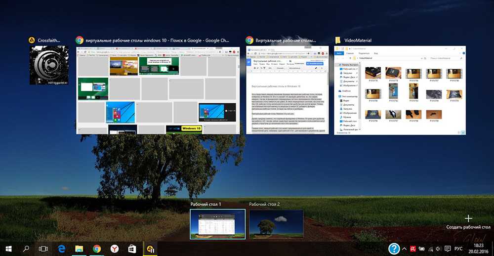 Для этой функции отдельной кнопки не предусмотрено – чтобы перейти к созданию и редактированию рабочих столов, нужно нажать на иконку «Представление задач» или Task View рядом с логотипом Microsoft и значком поиска. Нажатие на нее приводит к отображению на экране всех запущенных на данный момент приложений, а также открывает возможность создания новых виртуальных рабочих столов – просто нажмите на кнопку «Создать рабочий стол», что расположена в правом нижнем углу.
