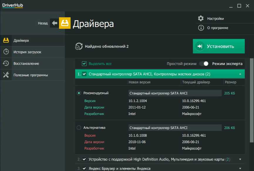 Чтобы просмотреть подробную информацию о драйвере, переключитесь в режим эксперта — программа покажет название производителя, размер, версию и дату старого и нового, рекомендуемого для установки драйвера. В режиме эксперта также будут показаны рекомендуемые для установки полезные программы, впрочем, вы от предложения их инсталляции можете отказаться.