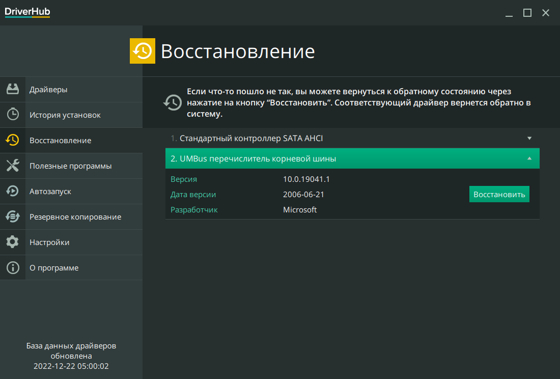 DriverHub действительно прост в использовании, потому что он загружает и устанавливает драйверы для вас и имеет целую часть программы, предназначенной для восстановления, если что-то пойдет не так.