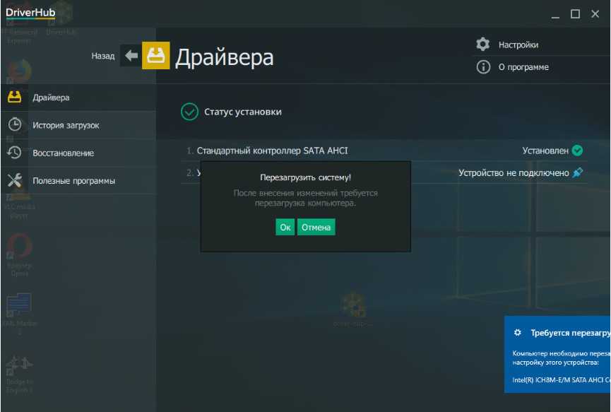 5. После запускаем в приложении DriverHub функцию сканирование системы (как описано выше). Программа обнаружит устройство, драйвер которого был только что удален, скачает и установит последнюю версию ПО.
