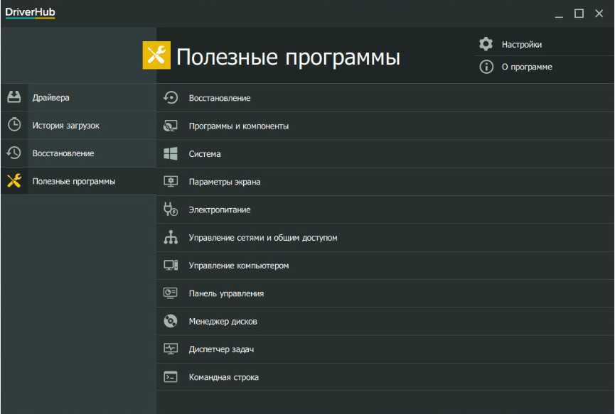 В DriverHub имеется также отдельный раздел «Полезные программы».