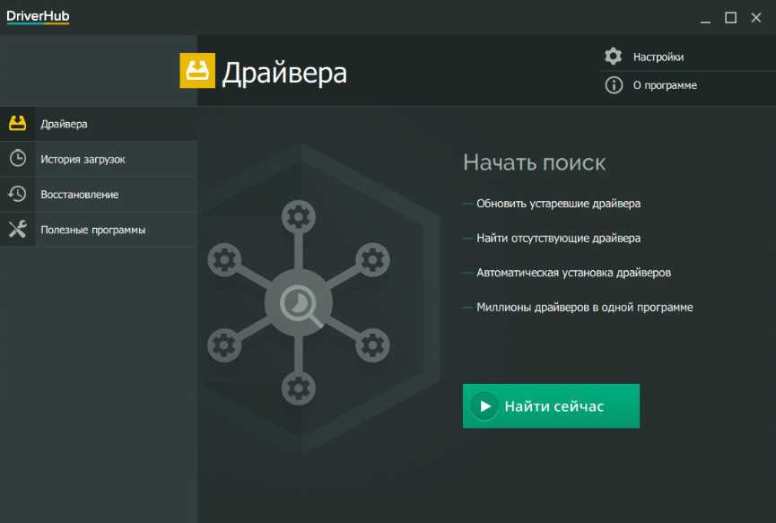Работать с программой очень просто. Установив и запустив DriverHub, нажмите кнопку «Найти сейчас».