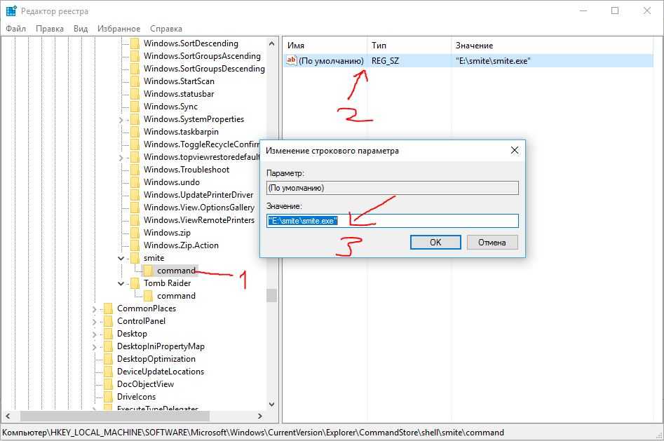 Переходим к только что созданному элементу и справа видим один единственный ключ с названием «По умолчанию». Следует отредактировать его значение (двойной щелчок левой кнопкой или через контекстное меню «Изменить…»), указав следующую строку: