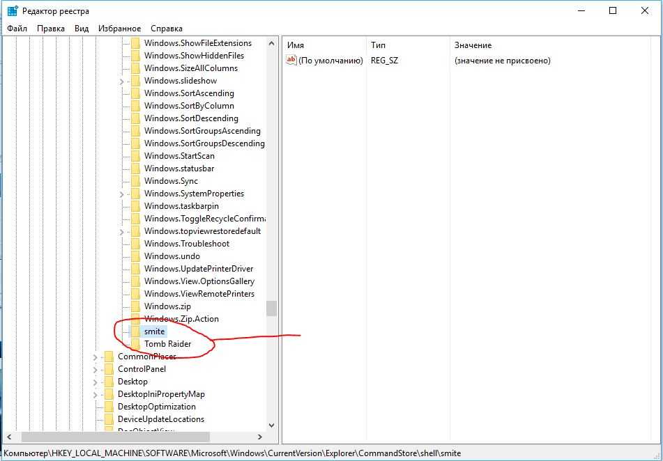 Здесь используется та же процедура, но в других ветках. Так как за набор команд Context Menu для файлов отвечают ветки «*/shellexContextMenuHandlers» и «*/shell» в разделе реестра «HKEY_CLASSES_ROOT»: