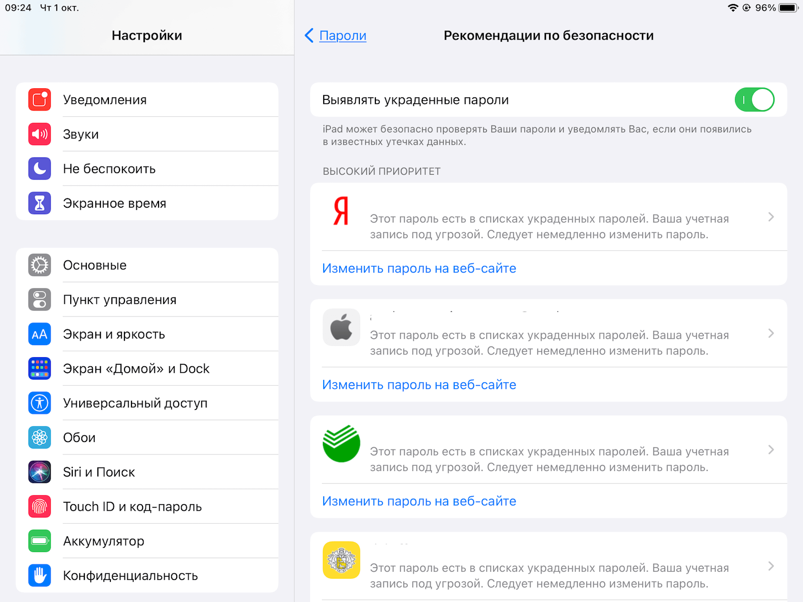 Раздел обновляется регулярно и автоматически, поднимая актуальные данные о взломанных сайтах и слитых базах личных данных, хранящиеся на серверах Apple.