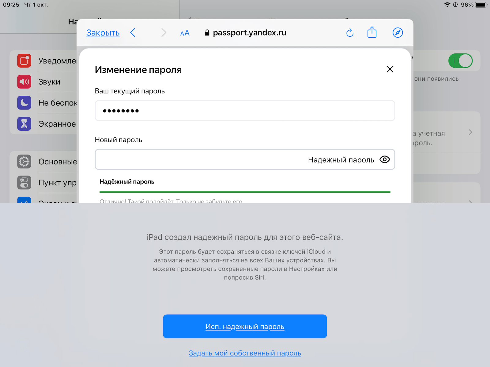 - Перейдите в профиль и измените пароль, выбрав тот, что предложит Safari;