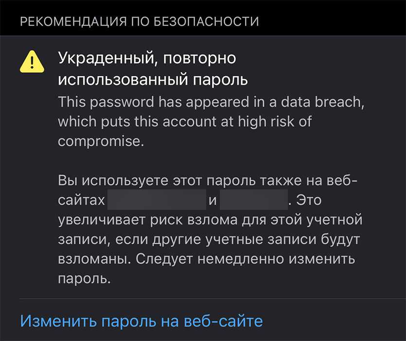 Но не спешите расстраиваться, получив неутешительную новость. Факт пометки вашего пароля ненадежным со стороны iOS вовсе не означает взлома конкретно вашей учетной записи. Вполне вероятно, что этим паролем пользовался кто-то другой, и именно его аккаунт и был раскрыт. Тем не менее стоит понимать, что если эти данные уже оказались в базе данных используемых паролей, то с большой вероятностью комбинация будет использована злоумышленниками при подборе паролей с помощью таких инструментов, как GrayShift или Cellebrite