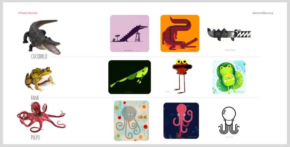 Инфографика тоже насыщает учебный материал. Вместо тысячи слов о различиях в стиле художников можно показать один слайд с разными вариантами отрисовки персонажей, как это делает Паула Боссио ↓