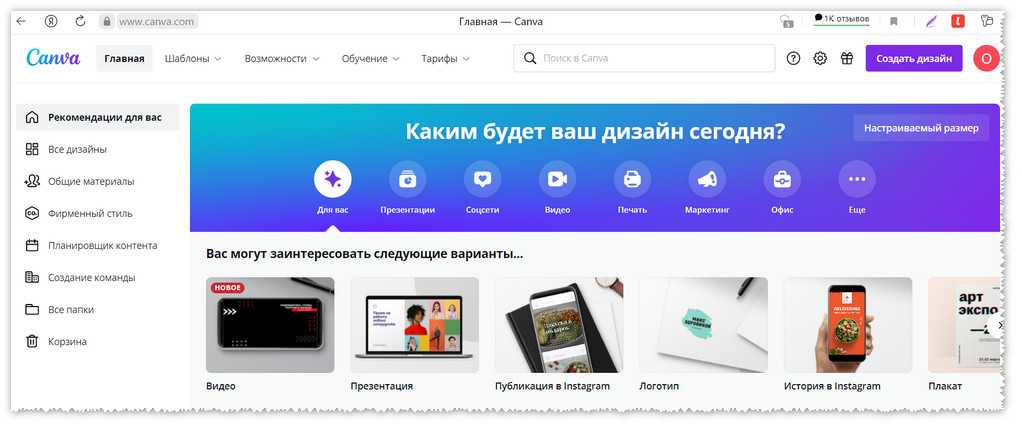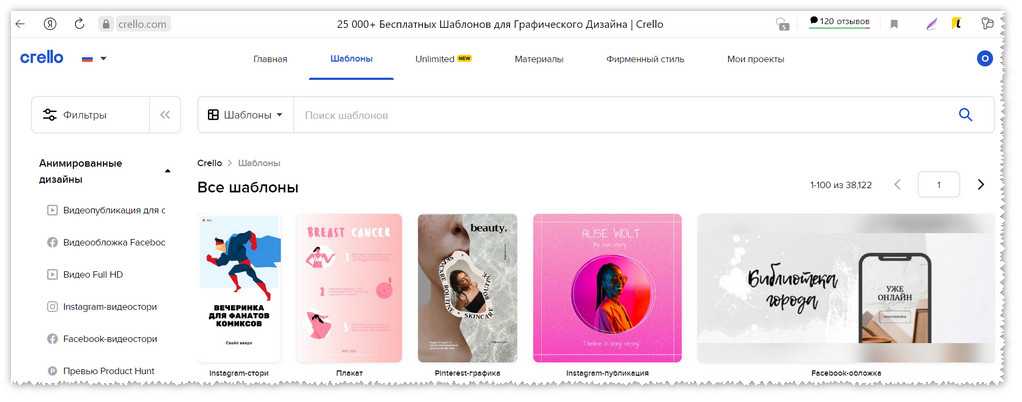 Это настоящее спасение для тех, у кого нет времени и желания осваивать Photoshop и подобные программы. В Canva и Crello собрано огромное количество шаблонов для визуального оформления не только социальных сетей, но и видео, презентаций, создания фотоколлажей, баннеров, сторис в Instagram, анимированных роликов и т.д.
