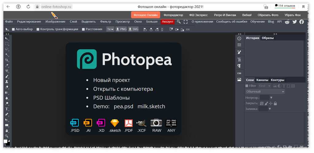 В этом случае обратите внимание на бесплатное приложение Фотошоп онлайн, которое не требует установки на ПК, и работать в нем можно прямо из браузера. Его опций вполне достаточно, чтобы отредактировать любое фото и изображение