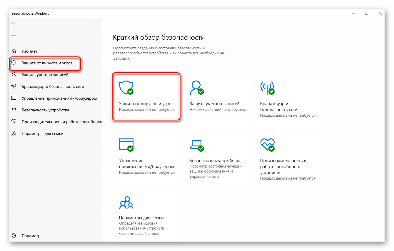 - Откройте вкладку «Защита от вирусов и угроз» в центре безопасности, как это было продемонстрировано выше;
