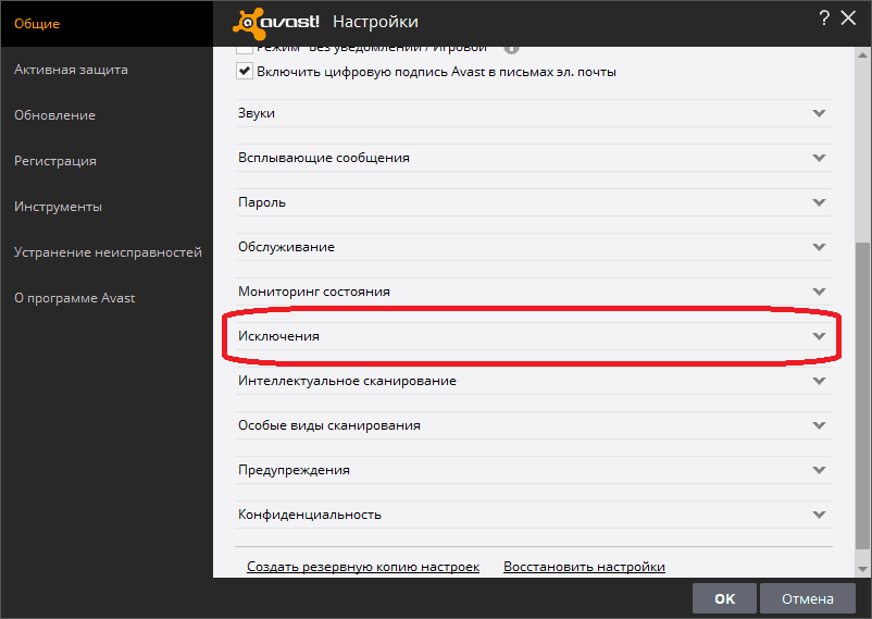 Подробнее: Добавление исключений в антивирусе Avast Free Antivirus